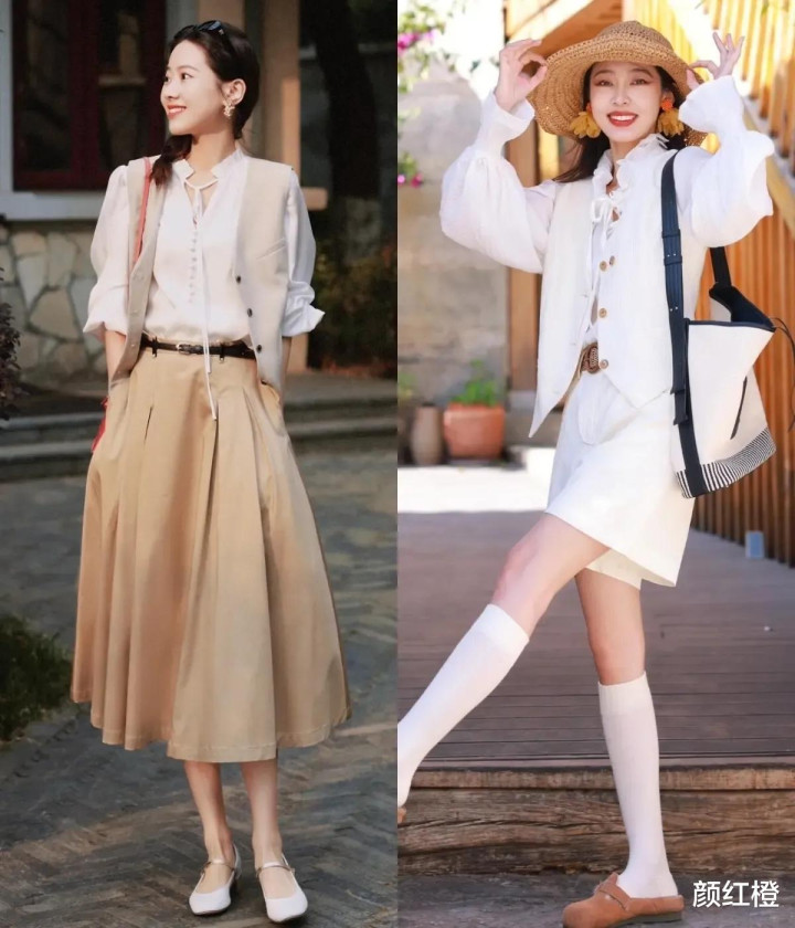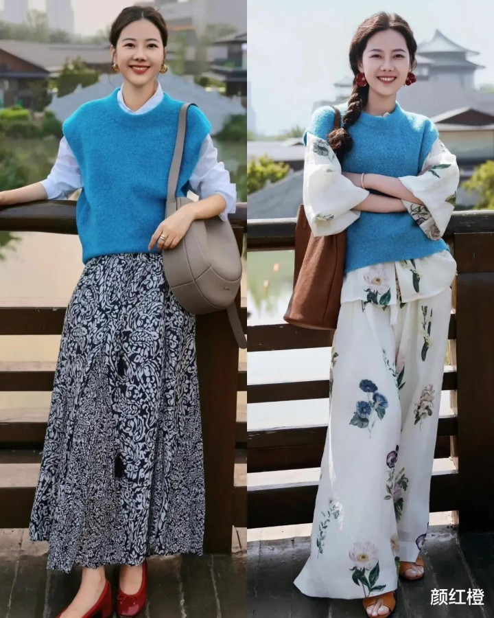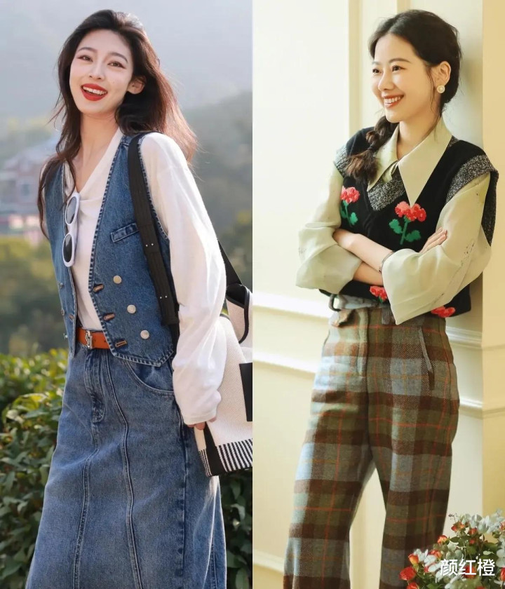 在这个春季,我们可以选择叠加的穿搭方法,毕竟不是每个城市都像南方一样比较暖和,用一件小小的外套或者是马甲来叠穿会更保暖,比如像下面这位达人用牛仔马甲内搭一件白色衬衫和牛仔半身裙就显得简约氧气,或者是一件针织马甲背心叠穿一件黄色衬衫和一条格纹的裤子,这两套穿衣打扮呈现了不一样的气质。